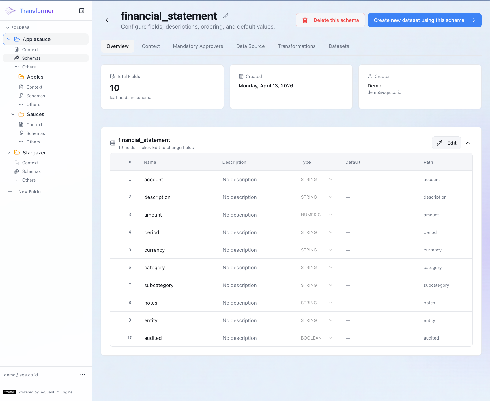 TransformerTransform inconsistent source data into governed, export-ready structure with assisted mapping, preview workflows, and schema-centered collaboration.